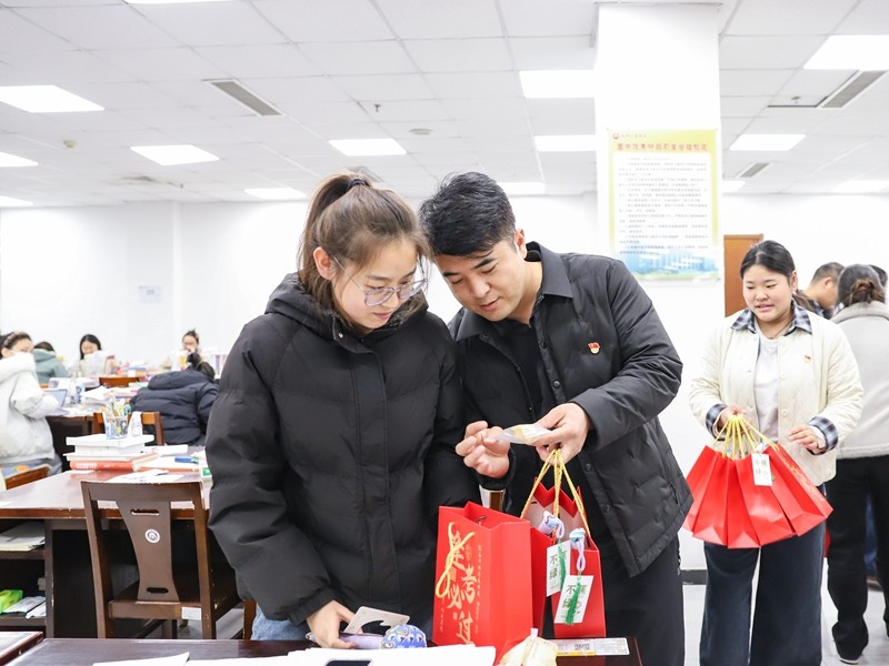 活动伊始,老师们为此次活动精心准备,定制可乐、手工编织挂件、金榜题名锤、手写的祝福卡片等考研礼包,每一样都蕴藏着对考研学子最真挚的关怀。接着,领导和老师们前往考研自习室亲自为考研学子们发放“逢考必过”考研礼包,将手写祝福卡片交给每位同学,并对考研同学致以暖心的慰问,考研学子收下领导和老师们准备的礼物并表达感谢。随后,领导和老师们分别慰问了考研学子的备考情况和身心状态,叮嘱大家合理规划时间、做到劳逸结合,以从容良好的心态迎战考试。最后,众人合影留念,这场暖心的活动也在温馨愉快的氛围里圆满结束。